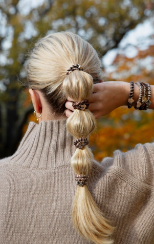 Ervaar de zachtheid van dit premium haarelastiek dat ook gedragen kan worden als een stijlvolle armband.